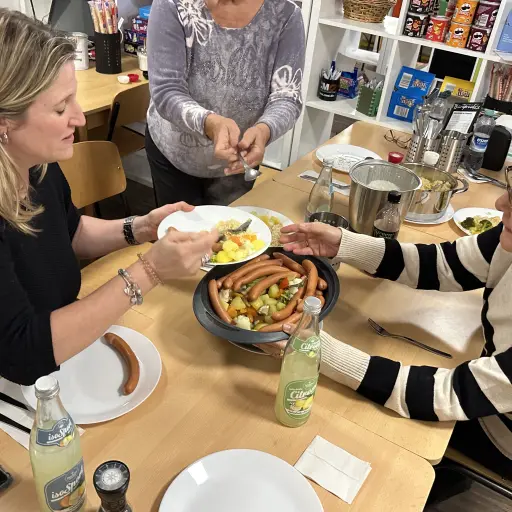 Am Samstag, den 17. Januar, fand ab 17 Uhr im Bürgerforum Ortsmitte die zweite EssBar statt. 14 Menschen kamen zusammen, um gemeinsam zu kochen, zu essen und sich auszutauschen. Trotz Heizungs- und Stromproblemen blieb die Stimmung gut und das Essen gelungen. Die EssBar zeigte erneut, wie verbindend gemeinsames Kochen sein kann. Der nächste Termin ist am 14. Februar ab 16 Uhr. Anmeldung unter https://www.detti.de.