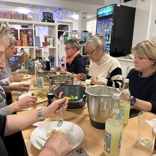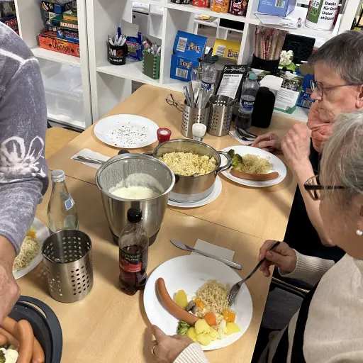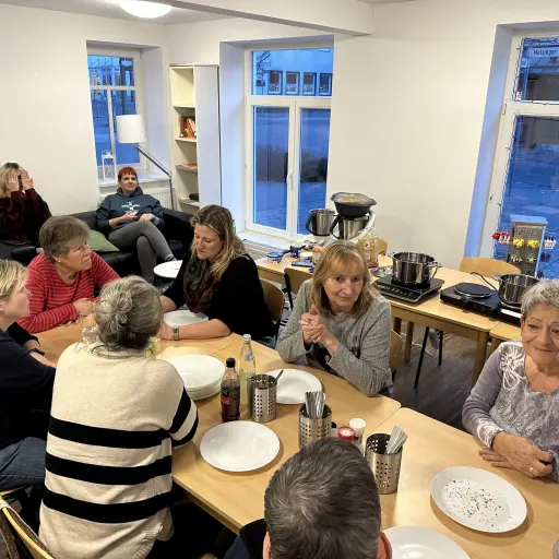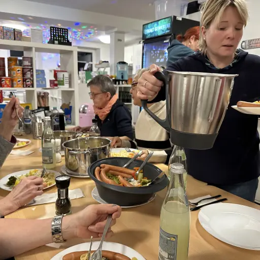 Am Samstag, den 17. Januar, fand ab 17 Uhr im Bürgerforum Ortsmitte die zweite EssBar statt. 14 Menschen kamen zusammen, um gemeinsam zu kochen, zu essen und sich auszutauschen. Trotz Heizungs- und Stromproblemen blieb die Stimmung gut und das Essen gelungen. Die EssBar zeigte erneut, wie verbindend gemeinsames Kochen sein kann. Der nächste Termin ist am 14. Februar ab 16 Uhr. Anmeldung unter https://www.detti.de.