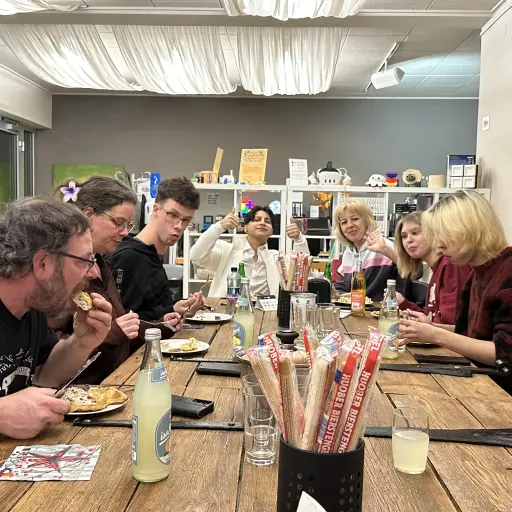 Unser gemeinsames Silvester 2025/2026 in der Buchhalde war ein gelungenes Fest mit 11 Menschen. Bei Kartenspielen, gutem Essen von Yuliia und Gustavo, vielfältigen Getränken und viel Geselligkeit verging der Abend wie im Flug. Dart, Gespräche, ein kurioser Besuch Jugendlicher und das Silvester-Spektakel aus London rundeten den schönen Jahreswechsel ab.